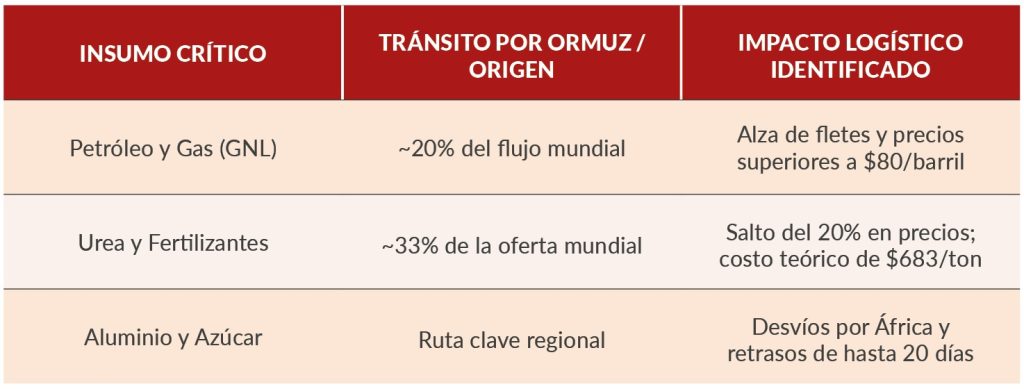 La paralización de Ormuz trasciende el costo del crudo; impacta el «costo total en destino» al integrar recargos por riesgo de guerra (War Risk) y el posible retiro de coberturas de seguros, lo que puede «parar» el mercado sin necesidad de un bloqueo físico total . Para el agro ecuatoriano, el encarecimiento de la urea presiona los márgenes de la campaña 2026/27, evidenciando una dependencia crítica de la petroquímica del Golfo que no admite sustitutos inmediatos.